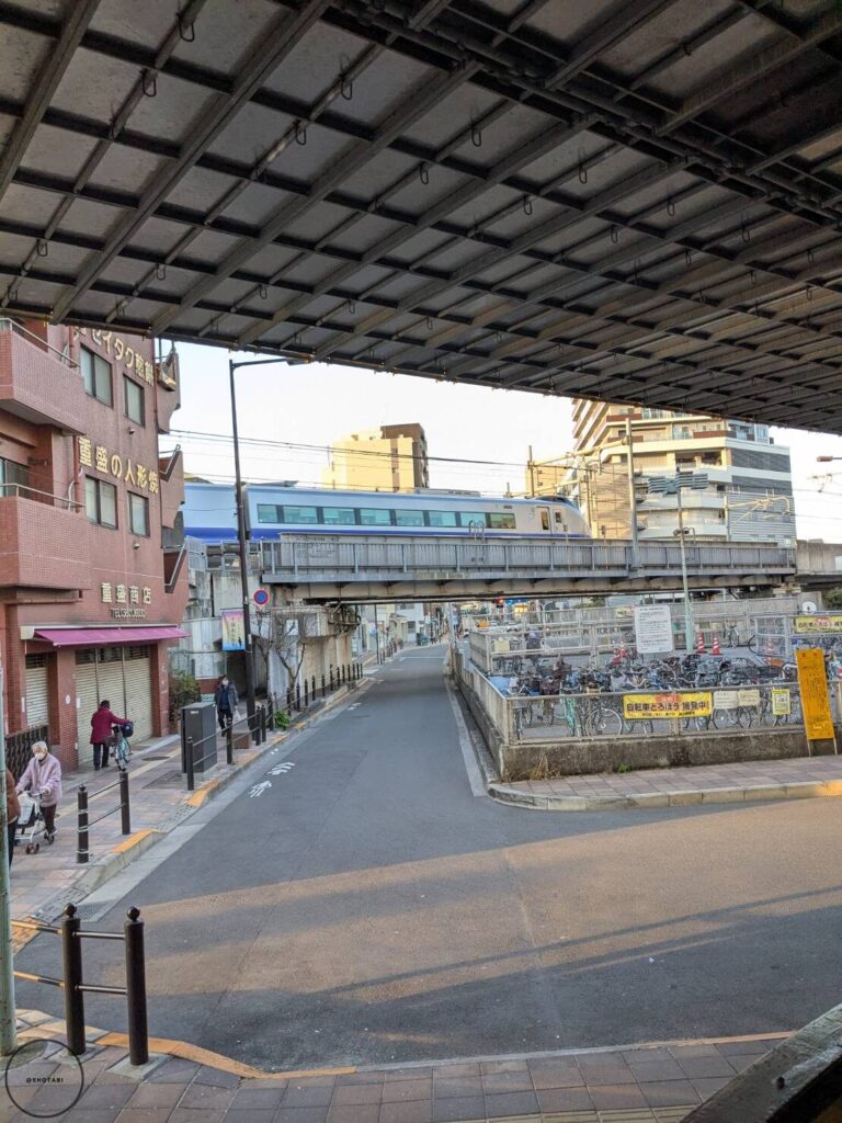 ・歩道橋からは日比谷線、都営バス(営業所がある)も見える