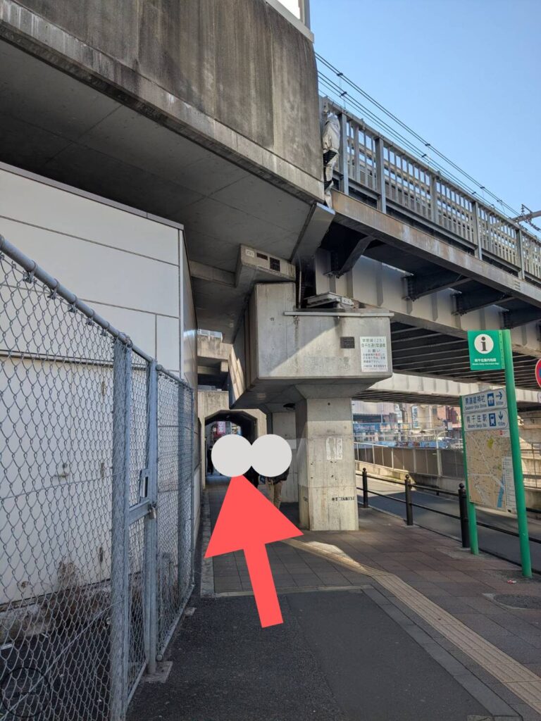 出るとすぐ横断歩道があるので渡って、高架脇の居酒屋さんなどが立ち並ぶ道を歩きます。