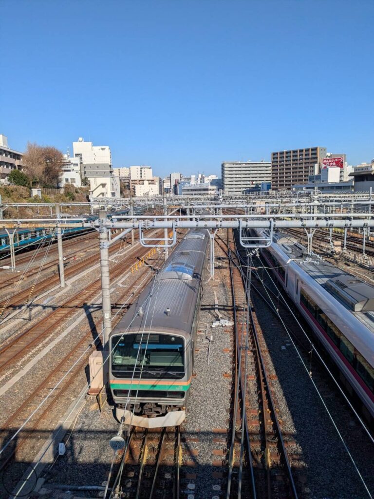 奥には常磐線、上野東京ラインも走っているので、タイミングが合えば特急も見れます。